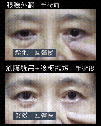 「瞼板縮短術」可強化眼瞼張力,改善外翻問題。